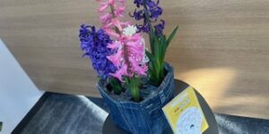 取引先のお花やさんよりヒヤシンスを頂きました!! ジーンズを …